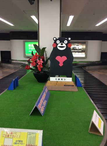 熊本空港ではぺったんこのくまモンがお出迎え(笑)